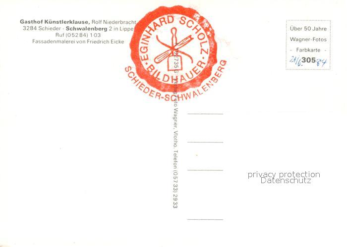 73116133 Schieder-Schwalenberg Gasthof Kuensterklause postalisch nicht gelaufen Erhaltung siehe scans [NatalD47] KatCode: 11110005766060