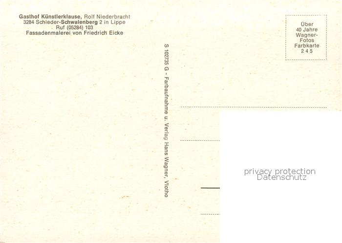 73176175 Schieder-Schwalenberg Gasthof Kuenstlerklause postalisch nicht gelaufen Erhaltung siehe scans [NatalD47] KatCode: 11110005766060