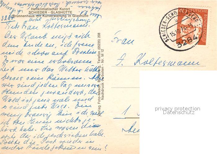 72966773 alte Postkarte Schieder-Schwalenberg Glashuette Brunnenhaus Kurverwaltung postalisch gelaufen Erhaltung siehe scans [LiesaD40] KatCode: 11110005766060