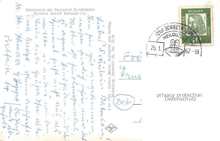 74153730 alte Postkarte Schieder-Schwalenberg Lippe NRW Kurheim Schloss Schieder postalisch gelaufen Erhaltung siehe scans [WerneD78] KatCode: 11110005766060
