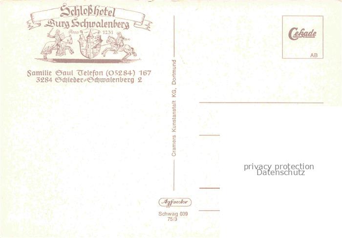 74110124 Schieder-Schwalenberg Lippe NRW Schlosshotel Burg Schwalenberg postalisch nicht gelaufen Erhaltung siehe scans [IrynaD87] Iryn Katcode 11110005766060
