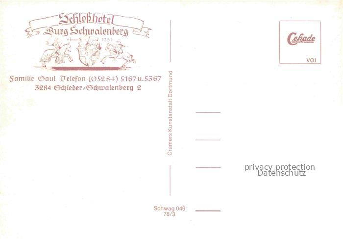 74110127 Schieder-Schwalenberg Lippe NRW Schlosshotel Burg postalisch nicht gelaufen Erhaltung siehe scans [IrynaD87] Iryn Katcode 11110005766060