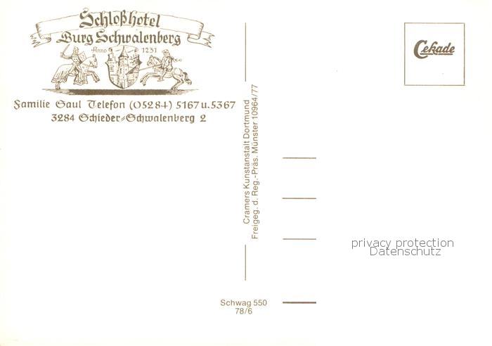 73766783 alte Postkarte Schieder-Schwalenberg Schlosshotel Burg Schwalenberg Fliegeraufnahme postalisch gelaufen Erhaltung siehe scans [WerneD78] KatCode: 11110005766060