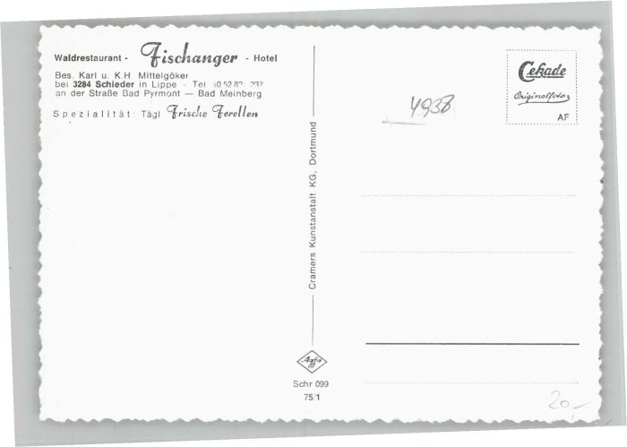 40685656 Schieder Waldrestaurant Fischanger Hotel KatCode 11110005766060