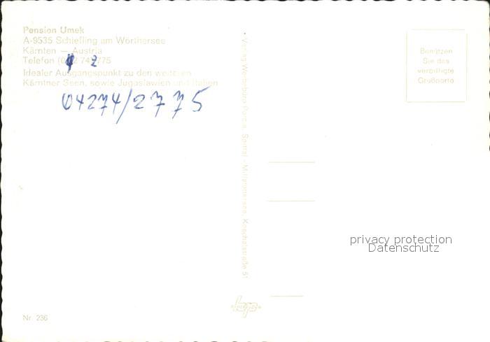 12570849 Schiefling See Pension Umek postalisch nicht gelaufen Erhaltung siehe scans [NatalD47] KatCode: 11390211020432