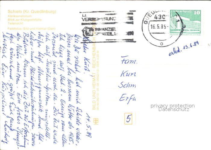 72139693 alte Postkarte Schielo Harz Kliniksanatorium Klubgaststaette Schwanenteich Teilansicht postalisch gelaufen Erhaltung siehe scans KatCode: 11110015085270