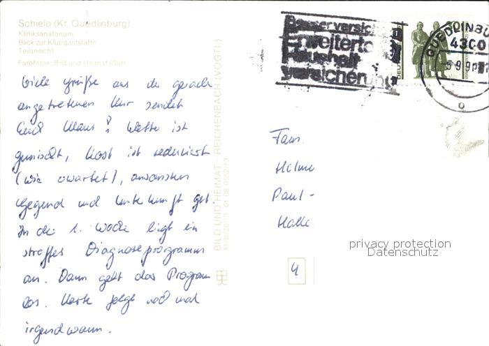 72539223 alte Postkarte Schielo Harz Kliniksanatorium Klubgaststaette Teilansicht postalisch gelaufen Erhaltung siehe scans [AndreD76 kt119box] KatCode: 11110015085270