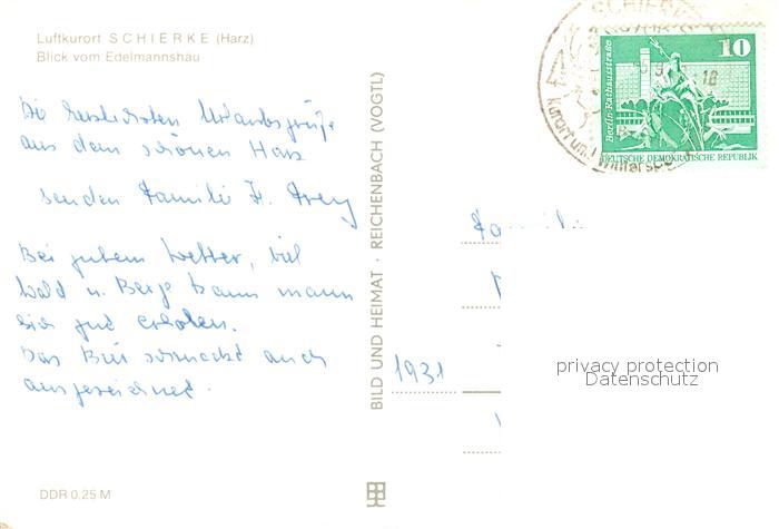 73043849 alte Postkarte Schierke Harz Blick vom Edelmannshau postalisch gelaufen Erhaltung siehe scans [WerneD78] KatCode: 11110015085275