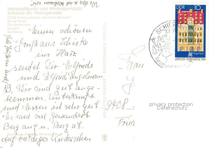 73076925 alte Postkarte Schierke Harz Bode Schnarcher Kurpark Kirchberg FDGB Erholungsheim Duncker postalisch gelaufen Erhaltung siehe scans [KathaD81] KatCode: 11110015085275