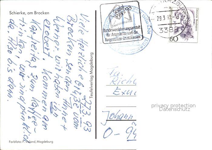 72567539 alte Postkarte Schierke Harz Brocken postalisch gelaufen Erhaltung siehe scans [LiesaD40] KatCode: 11110015085275