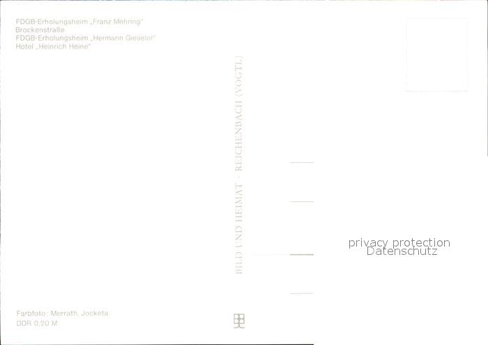 72597708 Schierke Harz Erholungsheime Brockenstrasse postalisch nicht gelaufen Erhaltung siehe scans [LiesaD40] KatCode: 11110015085275