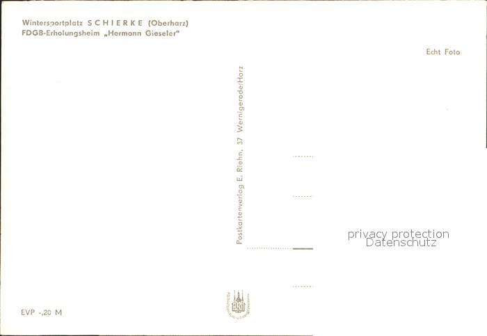 72091730 Schierke Harz FDGB Erholungsheim Hermann Gieseler postalisch nicht gelaufen Erhaltung siehe scans Alte Ansichtskarte Postkarte Lies Katcode 11110015085275