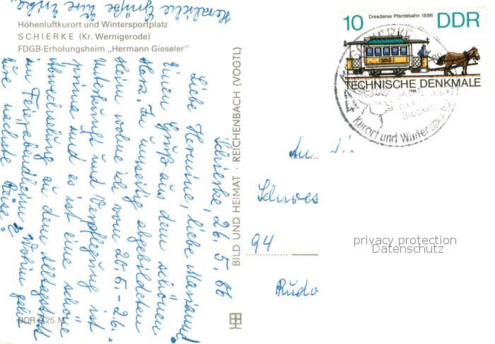 73765287 alte Postkarte Schierke Harz FDGB-Erholungsheim Hermann Gieseler Aussenansicht postalisch gelaufen Erhaltung siehe scans [LiesaD40] KatCode: 11110015085275