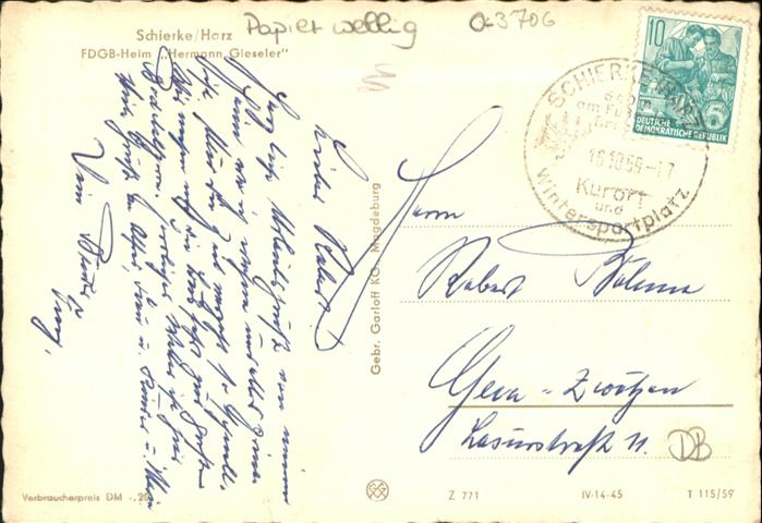 40976715 Schierke Harz FDGB Heim Hermann Gieseler KatCode 11110015085275