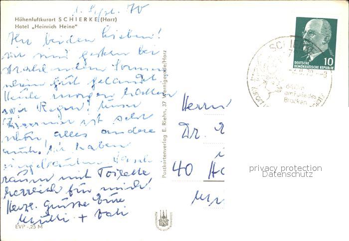72505812 alte Postkarte Schierke Harz Hotel Heinrich Heine postalisch gelaufen Erhaltung siehe scans KatCode: 11110015085275