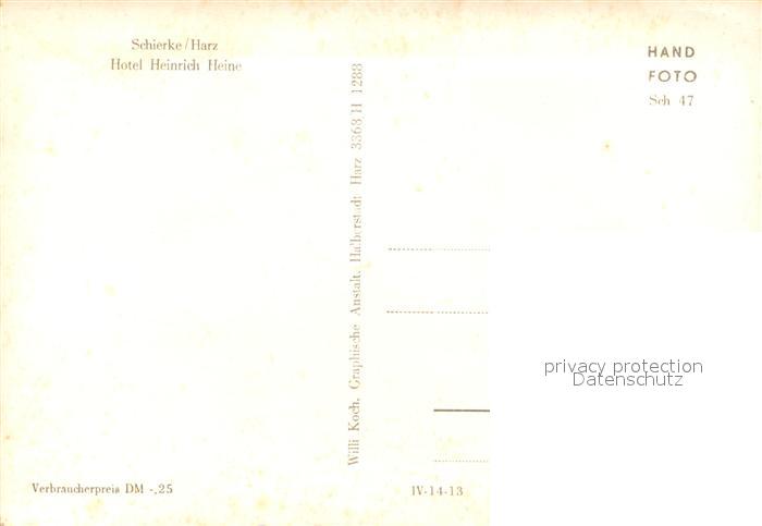 73543828 Schierke Harz Hotel Heinrich Heine postalisch nicht gelaufen Erhaltung siehe scans [FriedD77] KatCode: 11110015085275