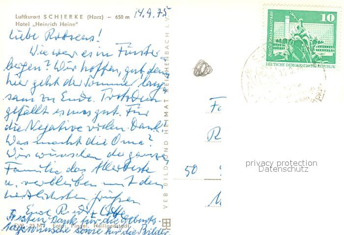 73320792 alte Postkarte Schierke Harz Hotel Heinrich Heine postalisch gelaufen Erhaltung siehe scans [KathaD81] KatCode: 11110015085275