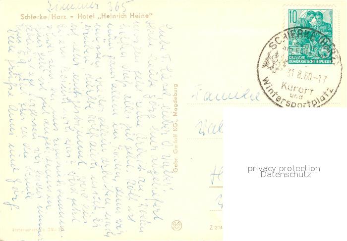 73031166 alte Postkarte Schierke Harz Hotel Heinrich Heine postalisch gelaufen Erhaltung siehe scans [KathaD81] KatCode: 11110015085275