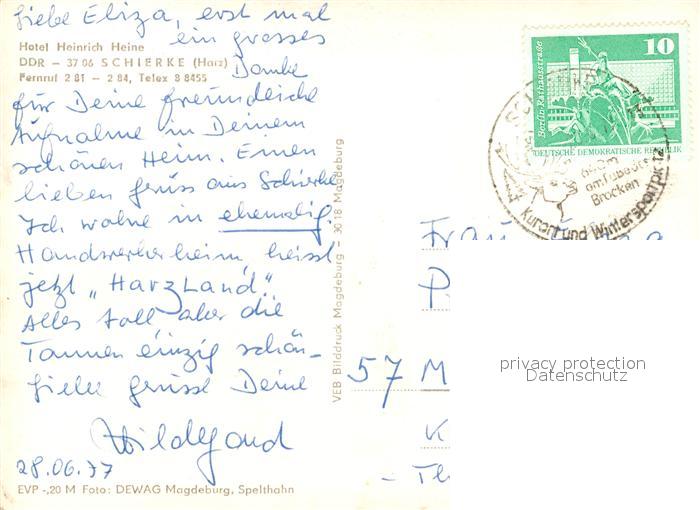 72952605 alte Postkarte Schierke Harz Hotel Heinrich Heine postalisch gelaufen Erhaltung siehe scans [FriedD77] KatCode: 11110015085275