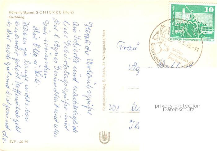 73032003 alte Postkarte Schierke Harz Kirchberg postalisch gelaufen Erhaltung siehe scans [KathaD81] KatCode: 11110015085275