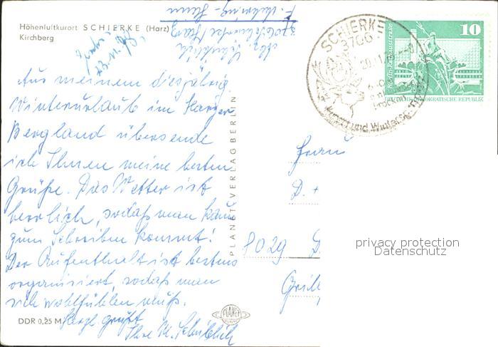 72357258 alte Postkarte Schierke Harz Kirchberg postalisch gelaufen Erhaltung siehe scans KatCode: 11110015085275