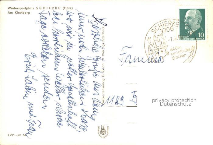 71972273 alte Postkarte Schierke Harz Kirchberg postalisch gelaufen Erhaltung siehe scans KatCode: 11110015085275