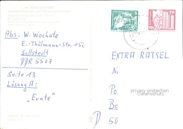 72401277 alte Postkarte Schierke Harz Luftkurort Brockenstrasse Hotel Heinrich Heine HO Gaststaetten postalisch gelaufen Erhaltung siehe scans KatCode: 11110015085275