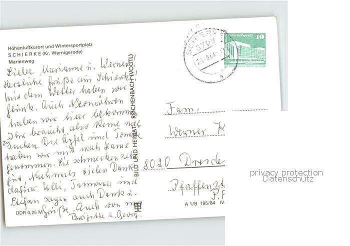72413260 alte Postkarte Schierke Harz Marienweg Hoehenluftkurort postalisch gelaufen Erhaltung siehe scans KatCode: 11110015085275