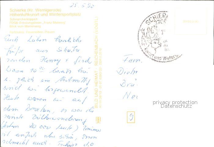 72382935 alte Postkarte Schierke Harz Schnarcherklippen Erholungsheim Franz Mehring postalisch gelaufen Erhaltung siehe scans KatCode: 11110015085275