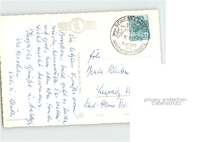 72360842 alte Postkarte Schierke Harz Sendetuerme postalisch gelaufen Erhaltung siehe scans KatCode: 11110015085275