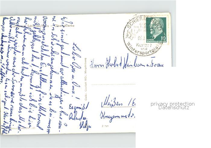 72412693 alte Postkarte Schierke Harz Strassenpartie Oberschierke postalisch gelaufen Erhaltung siehe scans KatCode: 11110015085275