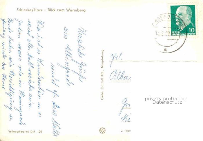 72704891 alte Postkarte Schierke Harz Wurmberg postalisch gelaufen Erhaltung siehe scans [AndreD76] KatCode: 11110015085275