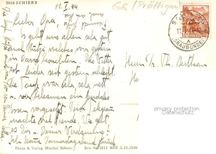 13798951 alte Postkarte Schiers Panorama Motiv mit Kirche postalisch gelaufen Erhaltung siehe scans [FriedD77] KatCode: 11470100350394