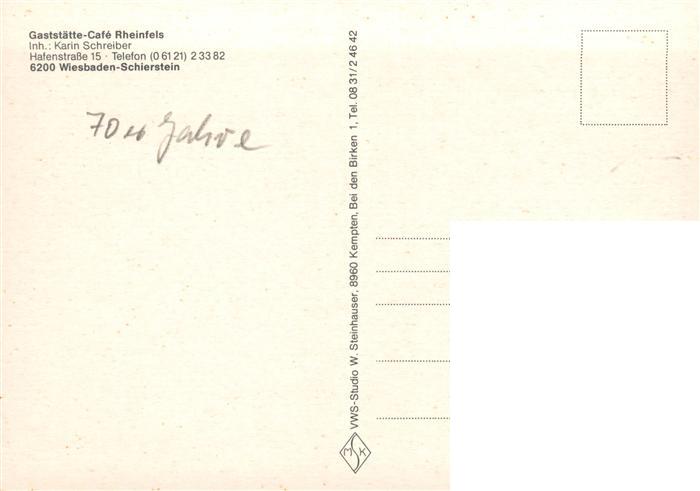 73890027 Schierstein Wiesbaden Gaststaette Cafe Rheinfels Gastraeume Terrasse postalisch nicht gelaufen Erhaltung siehe scans [WerneD78] KatCode: 11110006414000