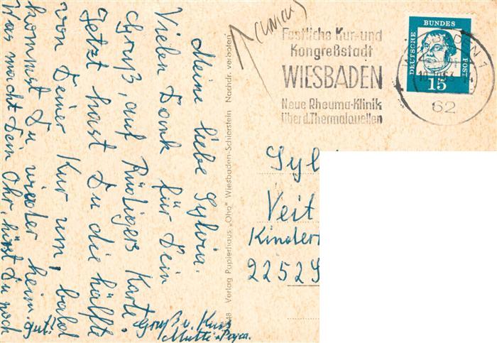 73890755 alte Postkarte Schierstein Wiesbaden Panorama Am Hafen Rheingaustrasse Karl Lehr Strasse mit Rathaus postalisch gelaufen Erhaltung siehe scans [WerneD78] KatCode: 11110006414000