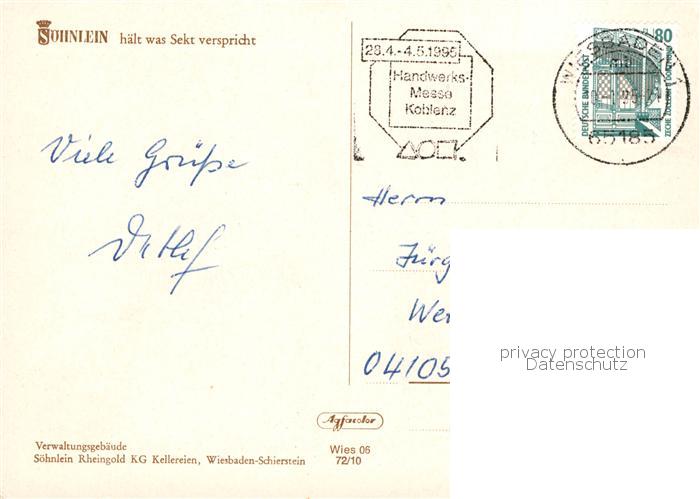 73867494 alte Postkarte Schierstein Wiesbaden Soehnlein Rheingold Sektkellerei postalisch gelaufen Erhaltung siehe scans [WerneD78] KatCode: 11110006414000
