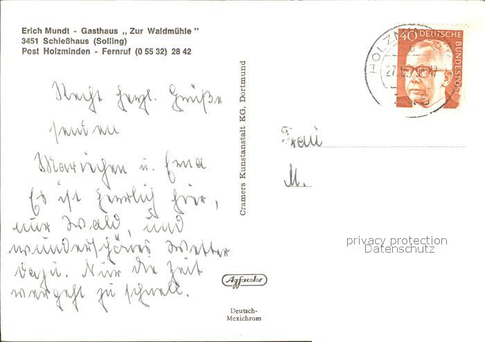 72596484 alte Postkarte Schiesshaus Holzminden Gasthaus Zur Waldmuehle postalisch gelaufen Erhaltung siehe scans [FriedD77] KatCode: 11110003255023