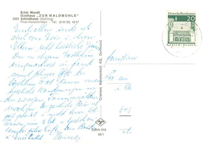 73887174 alte Postkarte Schiesshaus Holzminden Gasthaus Zur Waldmuehle postalisch gelaufen Erhaltung siehe scans [WerneD78] KatCode: 11110003255023