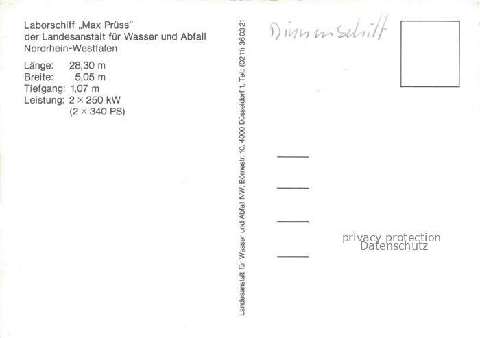 74051341 Schiffe Binnenschifffahrt Laborschiff Max Pruess Nordrhein Westfalen postalisch nicht gelaufen Erhaltung siehe scans [SanaeD93] KatCode: 22480000000100