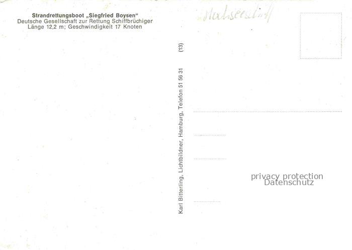 74051386 Schiffe Hochseeschiffe Strandrettungsboot Siegried Boysen postalisch nicht gelaufen Erhaltung siehe scans [SanaeD93] KatCode: 22480000000100