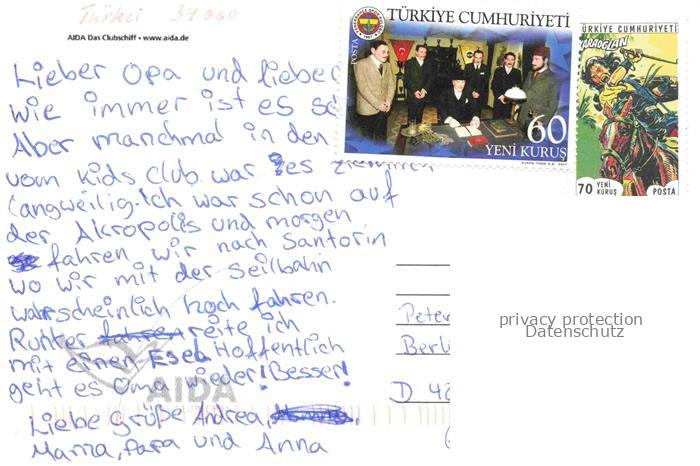 74021436 alte Postkarte Schiffe Oceanliner Aidadiva Mittelmeer Antalya Istanbul Izmir Tuerkei postalisch gelaufen Erhaltung siehe scans [SanaeD93] KatCode: 22480000000700