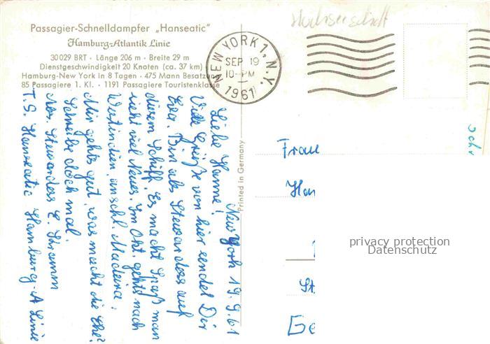 74051387 Schiffe Oceanliner Hochseeschiffe Hanseatic Hamburg Atlantik Line postalisch nicht gelaufen Erhaltung siehe scans [SanaeD93] KatCode: 22480000000700