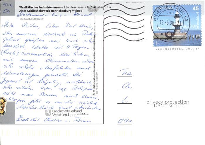 alte Postkarte Schiffe Ships Navires Altes Schiffshebewerk Henrichenburg Waltrop postalisch gelaufen Erhaltung siehe scans