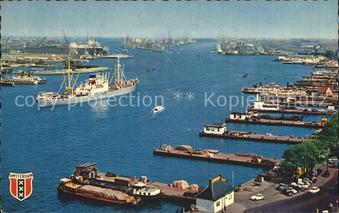 alte Postkarte Schiffe Ships Navires Amsterdam Hafen postalisch gelaufen Erhaltung siehe scans