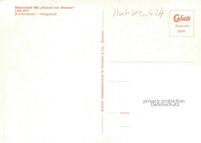 74052041 Schiffe Ships Navires Baederschiff MS Roland von Bremen 3800 BRT Bremerhaven Helgoland postalisch nicht gelaufen Erhaltung siehe scans [IrynaD87] KatCode: 22480000000800