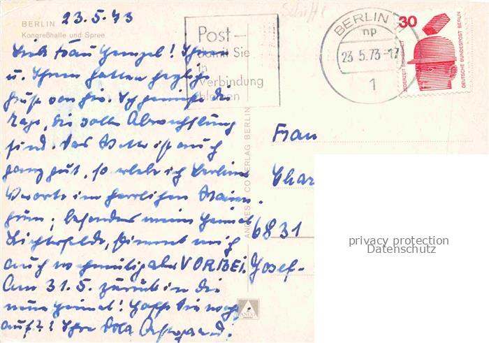 74051335 alte Postkarte Schiffe Ships Navires Berlin Kongresshalle Spree postalisch gelaufen Erhaltung siehe scans [SanaeD93] KatCode: 22480000000800