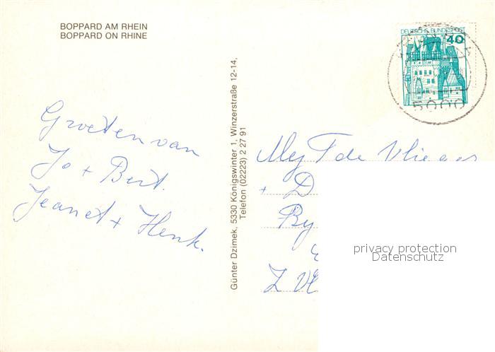 73908199 alte Postkarte Schiffe Ships Navires Boppard am Rhein postalisch gelaufen Erhaltung siehe scans [IrynaD87] KatCode: 22480000000800