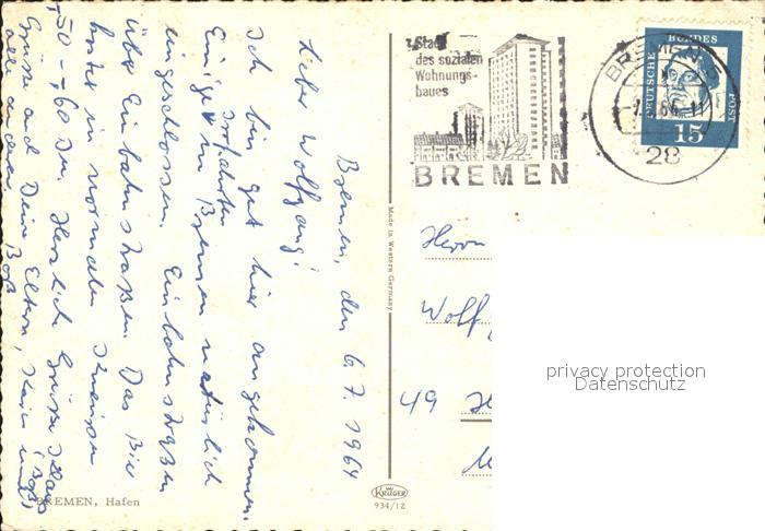 alte Postkarte Schiffe Ships Navires Bremen Hafen postalisch gelaufen Erhaltung siehe scans