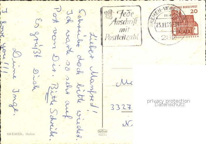 alte Postkarte Schiffe Ships Navires Bremen Hafen postalisch gelaufen Erhaltung siehe scans