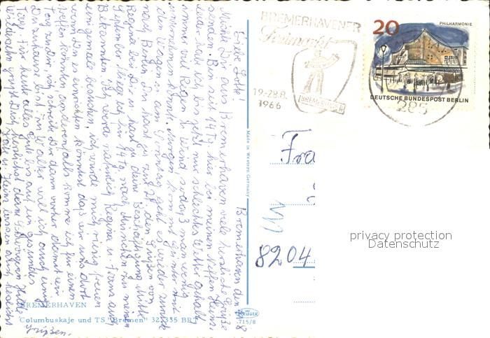 alte Postkarte Schiffe Ships Navires Bremerhaven Columbuskaje TS Bremen postalisch gelaufen Erhaltung siehe scans